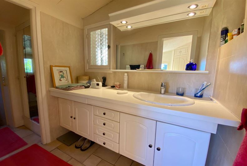 Dans un quartier prisé de VENCE, au calme absolu et à proximité immédiate du centre ville, Agréable villa en partie de plain-pied supérieur, comprenant hall d'entrée, salle de séjour donnant sur véranda, cuisine équipée avec office/ buanderie, deux chambres dont une avec salle d'eau/ w-c, un bureau avec placards pouvant être aménagée en 3ème chambre. En rez-de-jardin : petit appartement indépendant avec salle d'eau/ w-c et possibilité de kitchenette. Deux belles terrasses, piscine, jacuzzi, bassin d'agrément, abri voitures, l'ensemble sur un terrain complanté d'environ 1050 m².