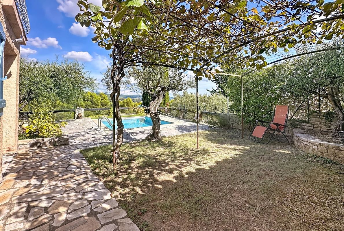 Nichée dans un environnement paisible, à seulement quelques minutes à pied du village, cette charmante propriété bénéficie d’une vue panoramique orientée à l’est, idéale pour profiter des levers de soleil. La maison se compose de deux appartements indépendants, offrant confort et intimité à ses occupants. À l’extérieur, un superbe jardin paysagé soigneusement entretenu s’étend autour de la maison, agrémenté de nombreux oliviers qui confèrent un charme méditerranéen et une atmosphère authentique. Une jolie piscine de 4 x 3 mètres complète ce cadre idyllique, parfaite pour des moments de détente en toute tranquillité. La propriété est entièrement privée, préservant une intimité rare dans un environnement aussi serein.