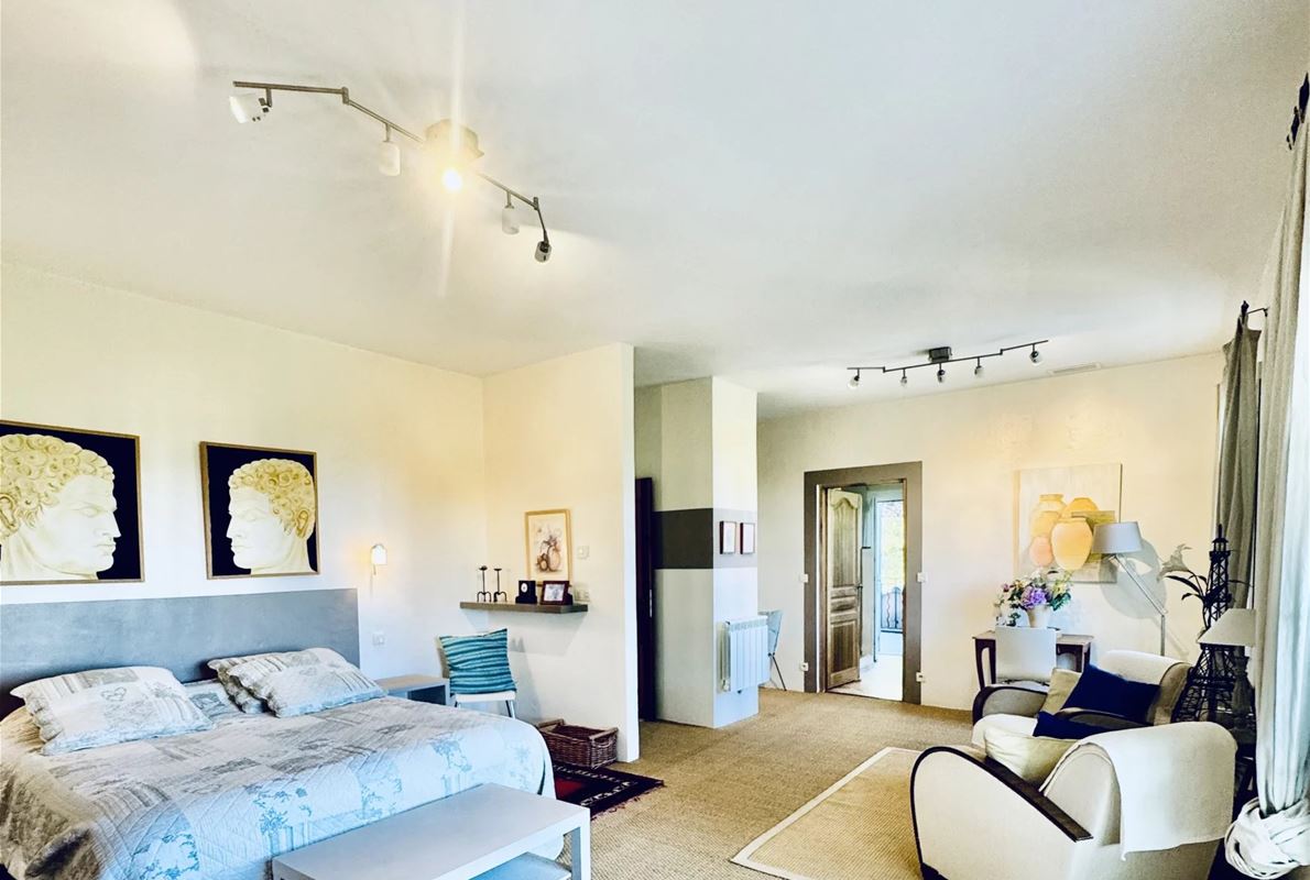 Superbe Bastide Traditionnelle avec Vue Panoramique Nichée dans un environnement verdoyant et recherché, cette magnifique bastide traditionnelle séduit par son authenticité, ses volumes généreux et sa vue totalement dégagée sur la campagne environnante. Dès l’entrée, vous serez charmé par de grandes pièces à vivre lumineuses, parfaitement agencées pour allier confort et convivialité. La spacieuse cuisine familiale, entièrement équipée, s’ouvre sur une vaste terrasse dominant la vue et donnant un accès direct à la piscine, idéale pour profiter des beaux jours en toute tranquillité. L’espace nuit se compose de quatre belles chambres, dont deux suites parentale, offrant chacune confort et intimité pour toute la famille ou les invités.