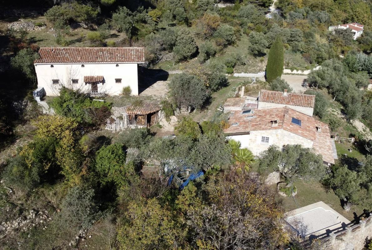 Deux bâtiments, le tout sur un vaste terrain de 19 474 m² joliment paysagé avec des oliviers. . La partie principale se compose Au rez-de-chaussée, vous trouverez une entrée avec placards, un cellier, une buanderie, une cave à vins et un bureau. En rez-de-jardin, un spacieux séjour de 53 m² avec cheminée insert et une cuisine équipée ouvrent sur une terrasse couverte, idéale pour profiter d’un coin cuisine d’été. À l’étage, la propriété dispose de trois chambres avec placards, d’une salle d’eau avec douche et d’un WC séparé. La chambre principale est accompagnée d’une salle de bains et d’un WC séparé, ainsi que d’une terrasse solarium. Les annexes comprennent un grand garage indépendant d’environ 184 m², surélevé d’un étage, deux cabanons en pierres et une piscine.