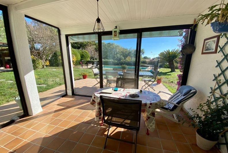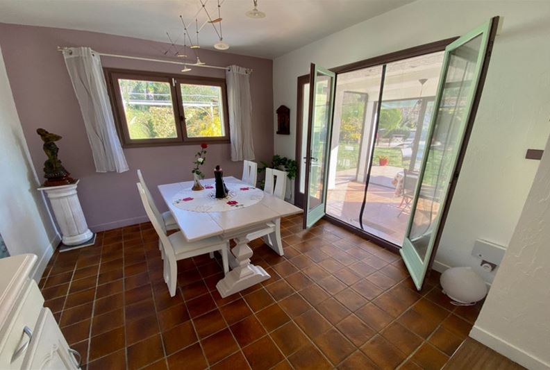 Au sud de VENCE, au calme, parfaitement exposée au Sud, Agréable villa offrant une vie en partie de plain-pied, comprenant hall d'entrée avec placards et w-c indépendant, salon avec cheminée, salle à manger donnant sur véranda, cuisine équipée indépendante entièrement rénovée, une grande chambre avec placard, chambre (2) avec espace mezzanine, salle d'eau, w-c. A l'étage : grande chambre (3) avec placards donnant sur une belle terrasse offrant une vue dégagée jusqu'à la mer, chambre (4) avec placards, salle de bains et w-c. Superbe piscine à débordement de 10x5 m avec belle plage dallée, terrasse couverte, parkings, cave, abri jardin, l'ensemble sur un terrain plat complanté d'environ 1511 m².