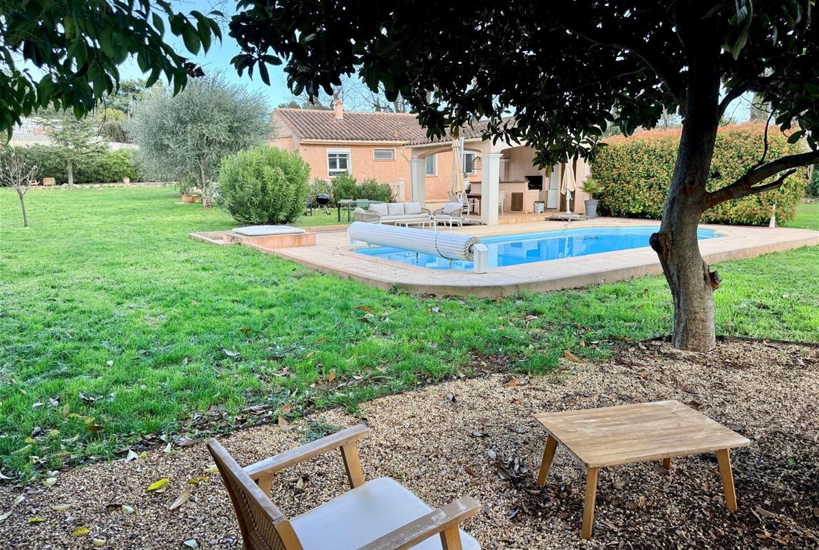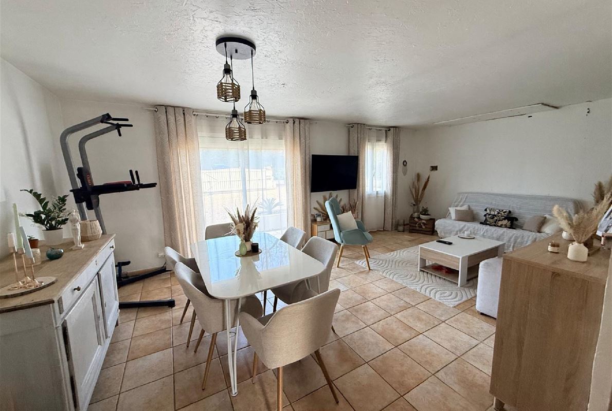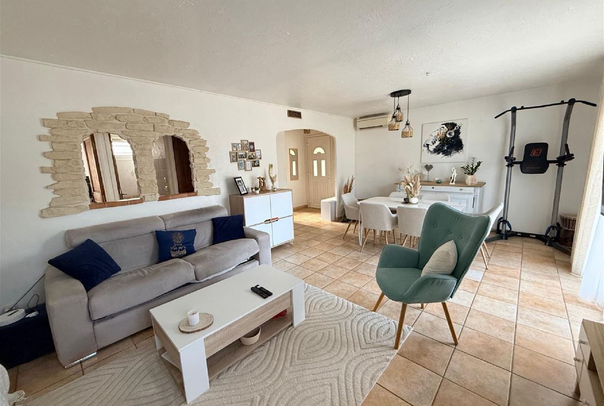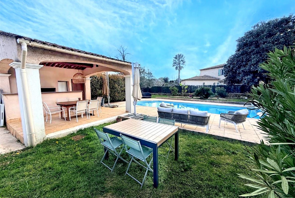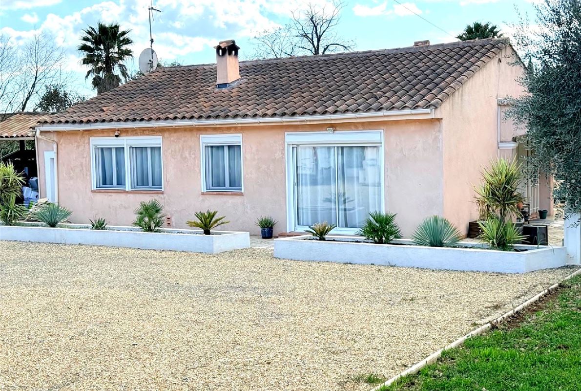 Maison d’environ 88 m2, implantée sur un magnifique terrain plat de 2000 m2 entièrement clôturé.( possibilité d'extension). La maison se compose : d’une entrée, d’une cuisine indépendante entièrement équipée, d’un salon / séjour lumineux de 3 chambres confortables, d’une salle d’eau et WC avec un garage attenant et carport. jardin arboré, véritable havre de paix, idéal pour profiter des beaux jours. Vous y trouverez également une belle piscine au sel de 9 x 4 m, parfaite pour les moments de détente en famille ou entre amis avec un très beau pool housse avec sa cuisine d'été mais également un terrain de pétanque. La propriété bénéficie également d’un forage, permettant d’alimenter la piscine et l’arrosage automatique du jardin, un véritable atout pour l’entretien.
