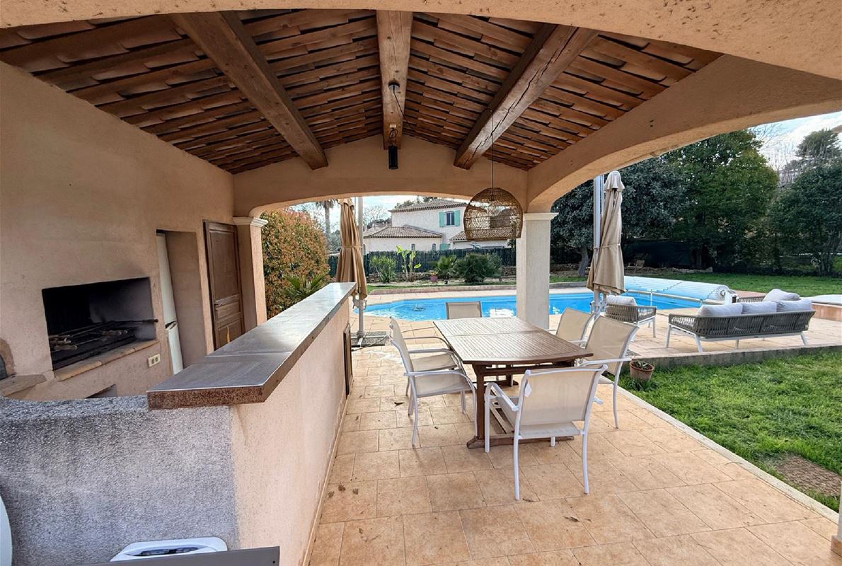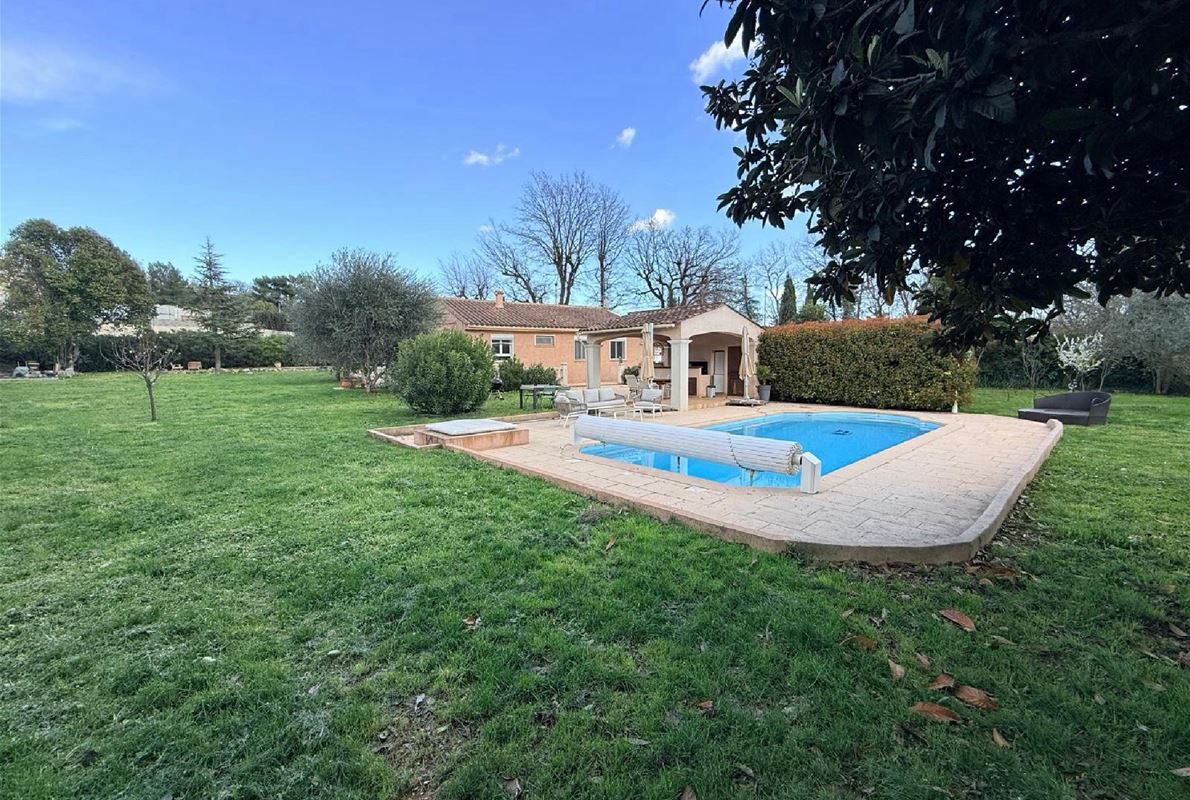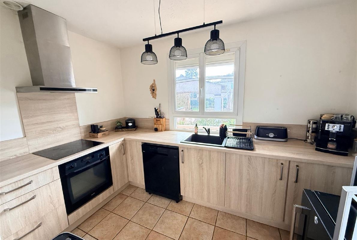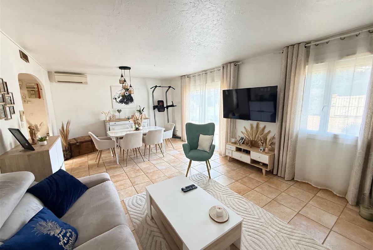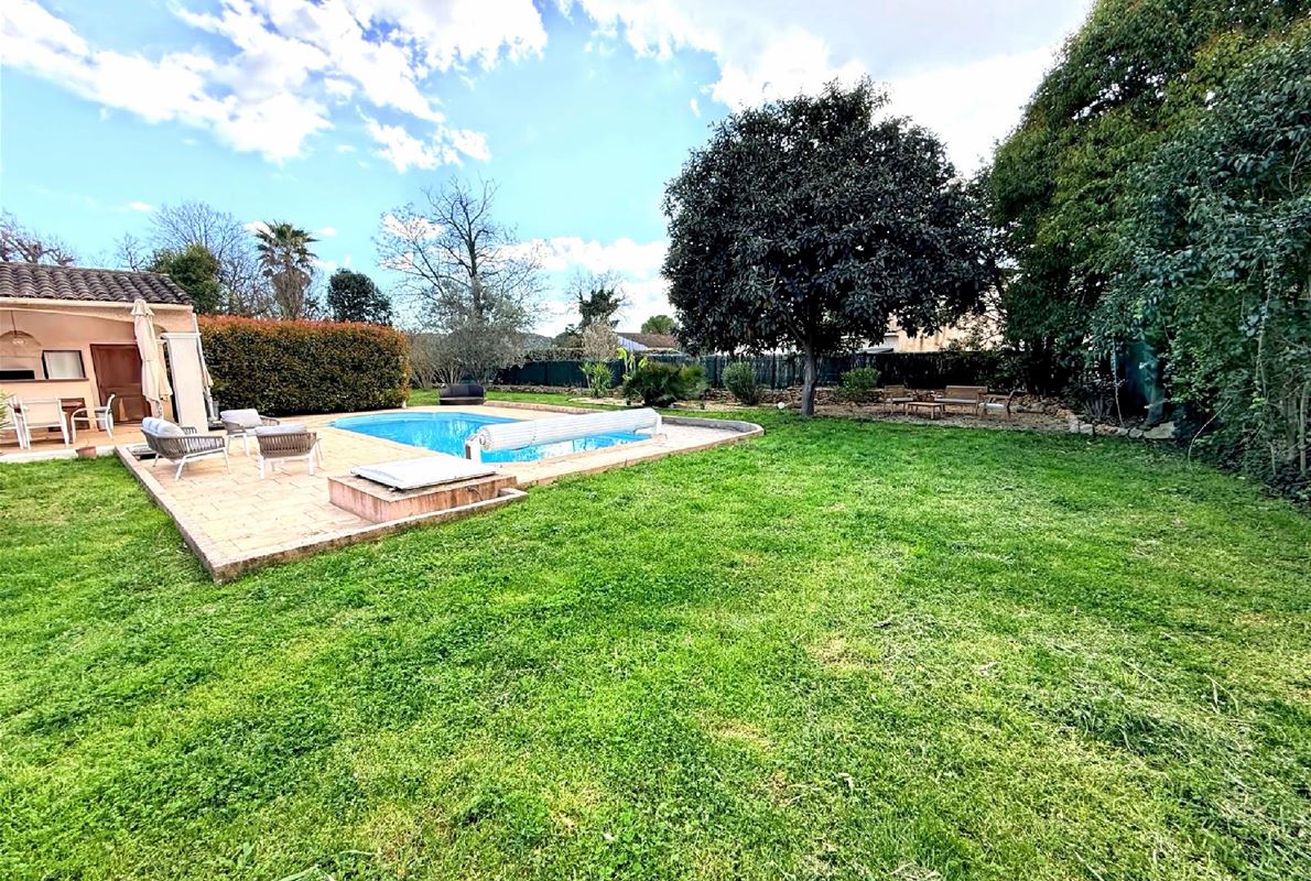 Maison d’environ 88 m2, implantée sur un magnifique terrain plat de 2000 m2 entièrement clôturé.( possibilité d'extension). La maison se compose : d’une entrée, d’une cuisine indépendante entièrement équipée, d’un salon / séjour lumineux de 3 chambres confortables, d’une salle d’eau et WC avec un garage attenant et carport. jardin arboré, véritable havre de paix, idéal pour profiter des beaux jours. Vous y trouverez également une belle piscine au sel de 9 x 4 m, parfaite pour les moments de détente en famille ou entre amis avec un très beau pool housse avec sa cuisine d'été mais également un terrain de pétanque. La propriété bénéficie également d’un forage, permettant d’alimenter la piscine et l’arrosage automatique du jardin, un véritable atout pour l’entretien.