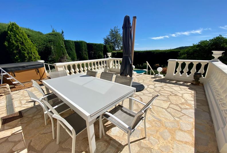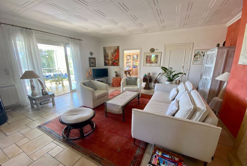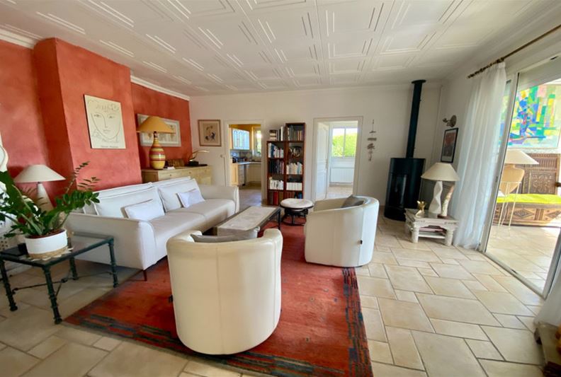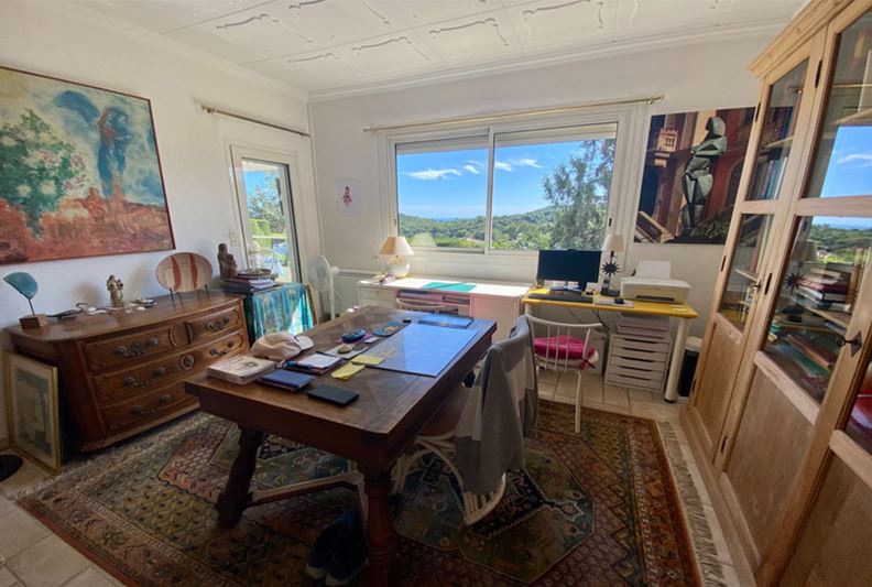 Dans un quartier prisé de VENCE, au calme absolu et à proximité immédiate du centre ville, Agréable villa en partie de plain-pied supérieur, comprenant hall d'entrée, salle de séjour donnant sur véranda, cuisine équipée avec office/ buanderie, deux chambres dont une avec salle d'eau/ w-c, un bureau avec placards pouvant être aménagée en 3ème chambre. En rez-de-jardin : petit appartement indépendant avec salle d'eau/ w-c et possibilité de kitchenette. Deux belles terrasses, piscine, jacuzzi, bassin d'agrément, abri voitures, l'ensemble sur un terrain complanté d'environ 1050 m².