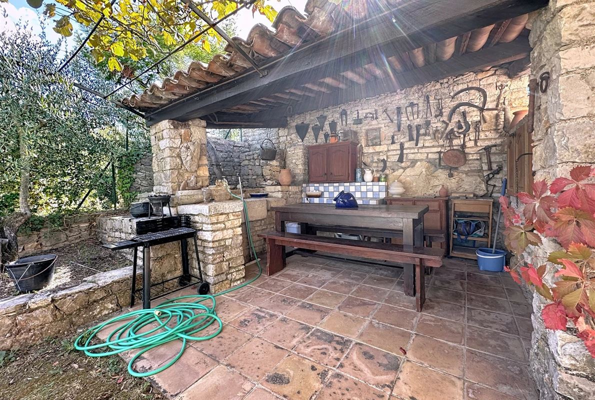 Nichée dans un environnement paisible, à seulement quelques minutes à pied du village, cette charmante propriété bénéficie d’une vue panoramique orientée à l’est, idéale pour profiter des levers de soleil. La maison se compose de deux appartements indépendants, offrant confort et intimité à ses occupants. À l’extérieur, un superbe jardin paysagé soigneusement entretenu s’étend autour de la maison, agrémenté de nombreux oliviers qui confèrent un charme méditerranéen et une atmosphère authentique. Une jolie piscine de 4 x 3 mètres complète ce cadre idyllique, parfaite pour des moments de détente en toute tranquillité. La propriété est entièrement privée, préservant une intimité rare dans un environnement aussi serein.