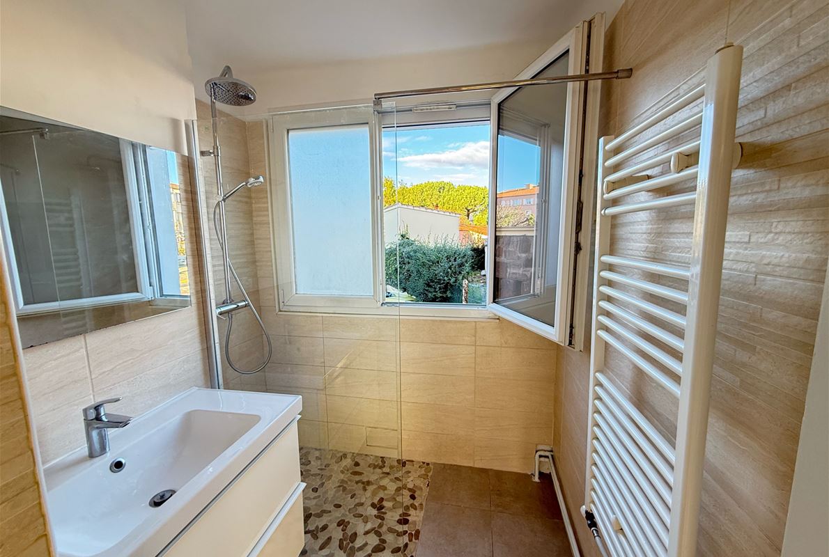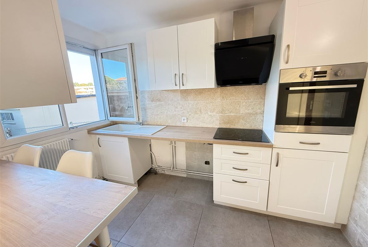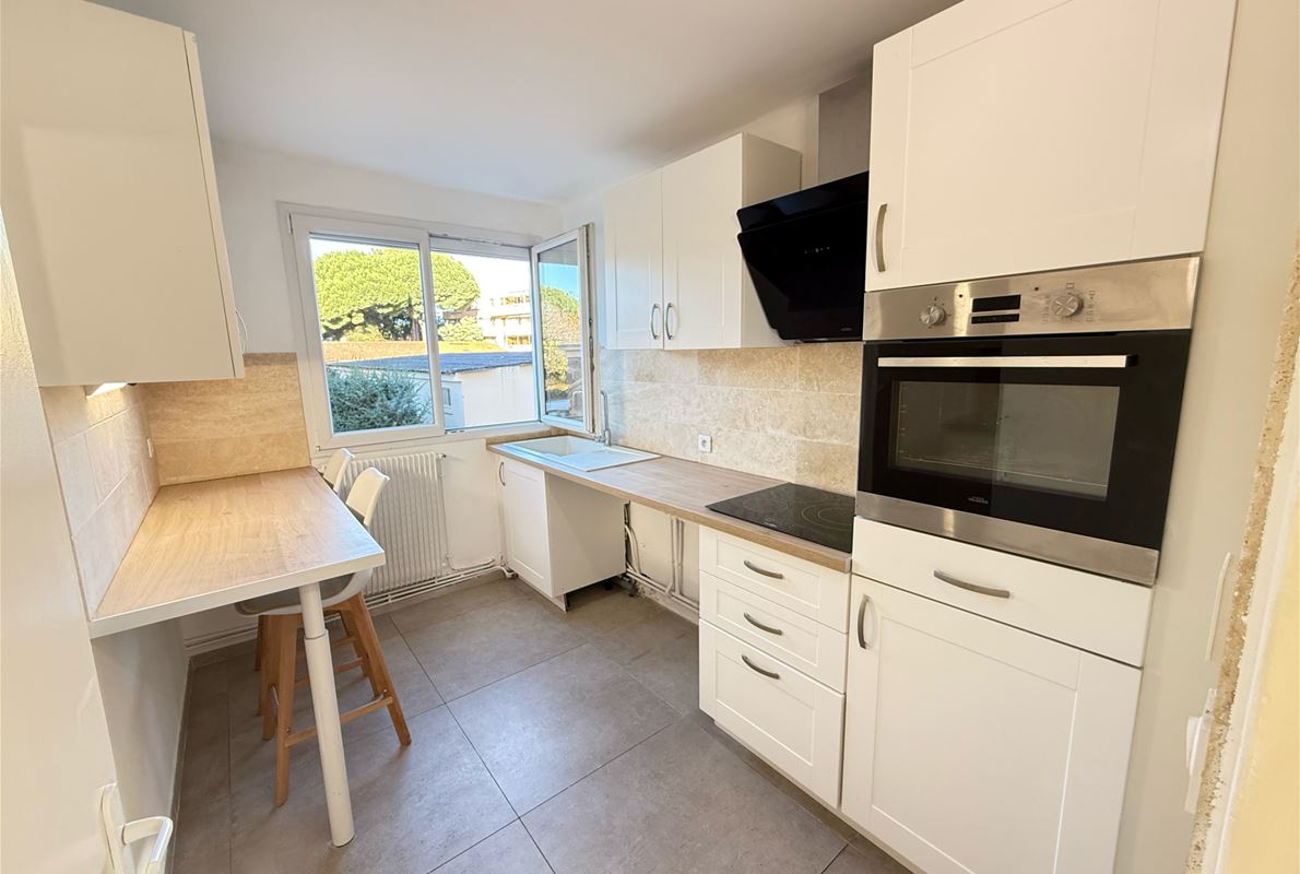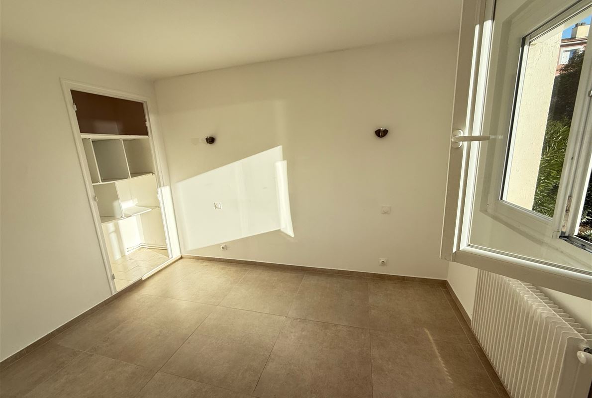 Entre le centre ville et les plages de FREJUS, appartement 4 pièces traversant d'environ 70m2 composé d'une entrée avec placard, une cuisine indépendante équipée, une arrière cuisine, 3 chambres dont 2 avec placards, un séjour sur terrasse sud-est. Cave. Parking privé. Volets roulants solaires.