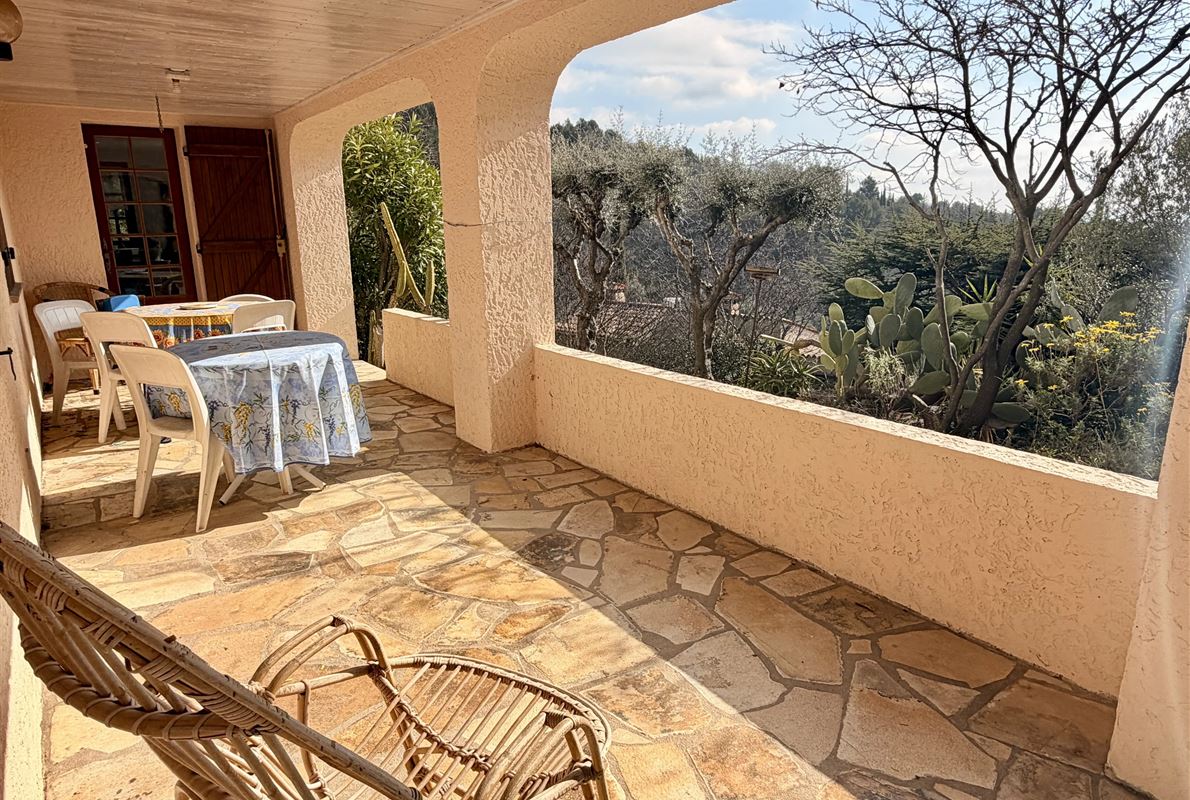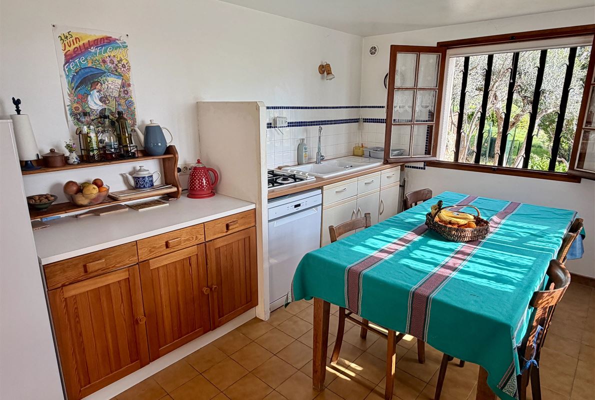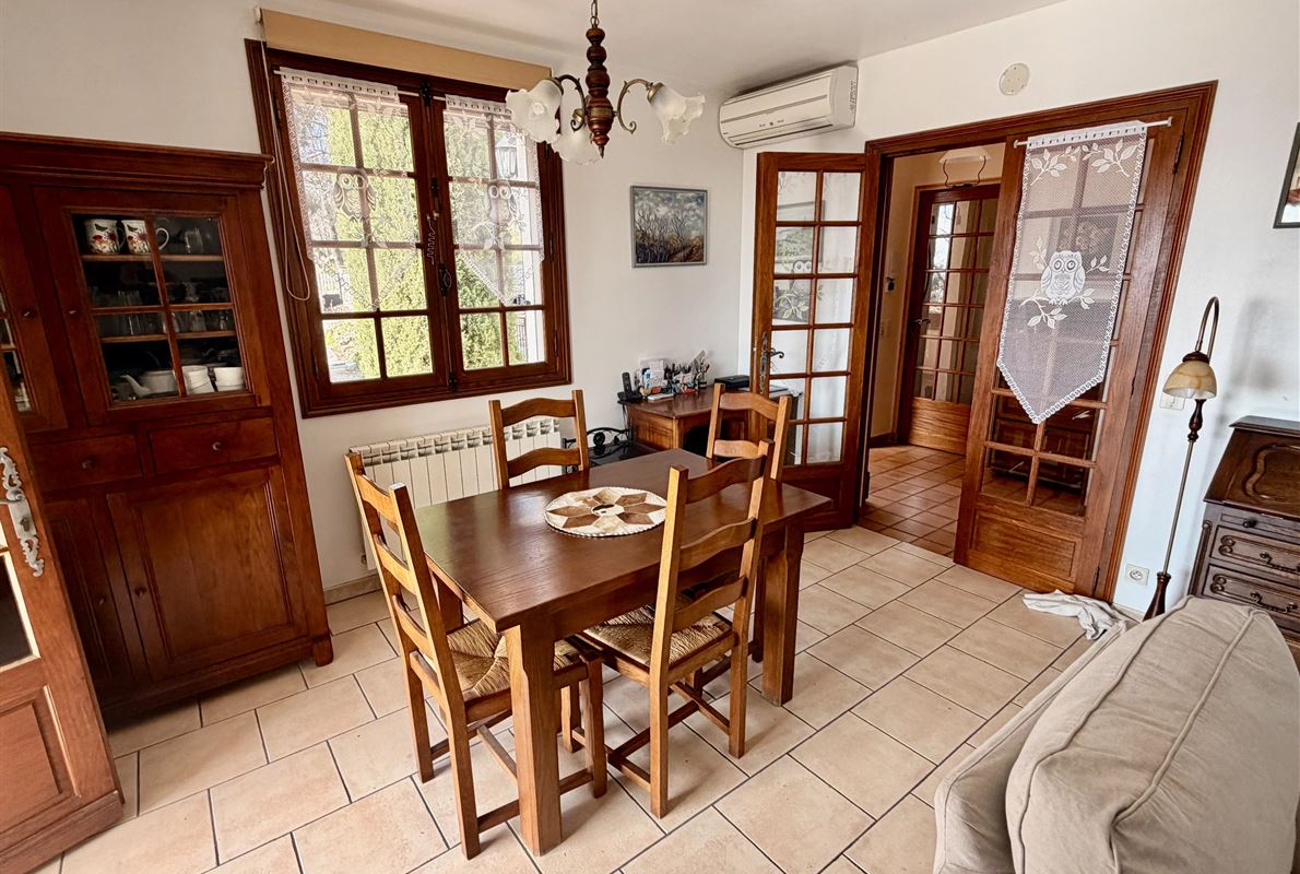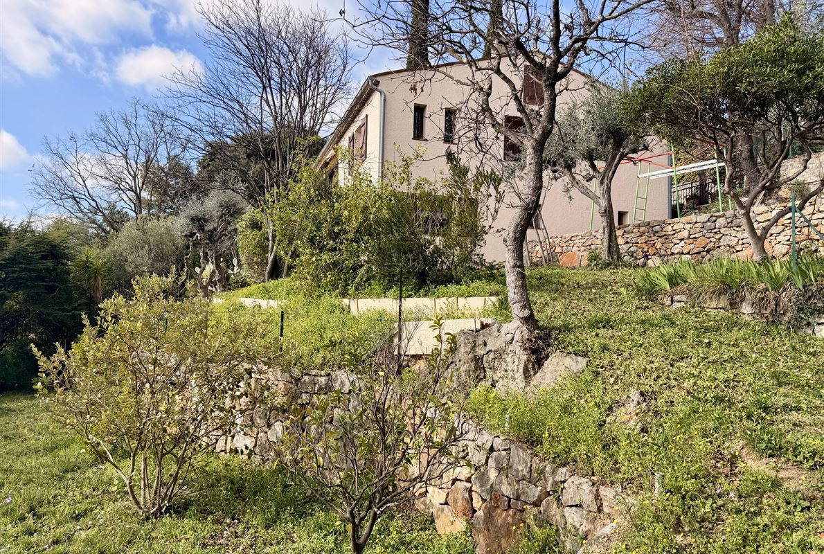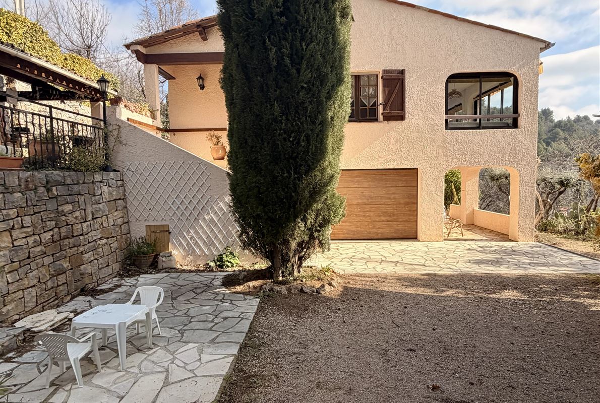 Très agréable villa construite en 1982, sur un magnifique terrain clos et arboré de 1 798 m². Idéalement située sur les hauteurs, une très belle vue dégagée sur la région tout en étant accessible à pied du village, des restaurants et des commerces. La villa principale se compose : Au rez-de-chaussée : Porche et hall d’entrée WC invités avec dressing Agréable séjour avec cheminée insert, ouvrant sur une agréable véranda Cuisine équipée Deux chambres avec placards Dressing Salle d’eau avec WC En rez-de-jardin : Un appartement comprenant : Séjour avec cuisine ouverte, donnant sur une terrasse couverte Deux chambres Salle d’eau avec douche et WC Attenant à cet espace : Garage avec porte automatique Cave Buanderie