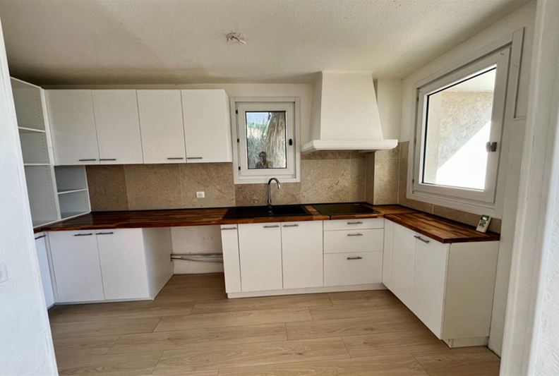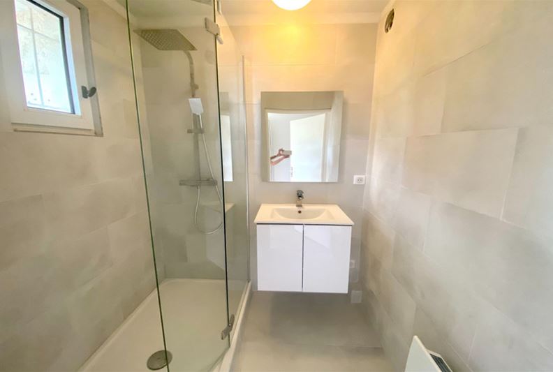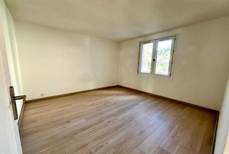 VENCE, dans une résidence sécurisée, à proximité des écoles, appartement entièrement rénové comprenant séjour, cuisine ouverte aménagée, deux chambres, salle d'eau, w-c, buanderie et placards. Loggia, parking privé extérieur.