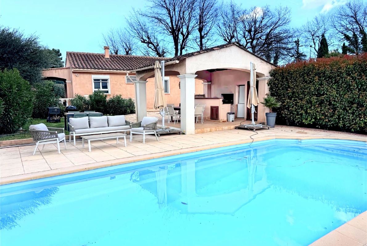 Maison d’environ 88 m2, implantée sur un magnifique terrain plat de 2000 m2 entièrement clôturé.( possibilité d'extension). La maison se compose : d’une entrée, d’une cuisine indépendante entièrement équipée, d’un salon / séjour lumineux de 3 chambres confortables, d’une salle d’eau et WC avec un garage attenant et carport. jardin arboré, véritable havre de paix, idéal pour profiter des beaux jours. Vous y trouverez également une belle piscine au sel de 9 x 4 m, parfaite pour les moments de détente en famille ou entre amis avec un très beau pool housse avec sa cuisine d'été mais également un terrain de pétanque. La propriété bénéficie également d’un forage, permettant d’alimenter la piscine et l’arrosage automatique du jardin, un véritable atout pour l’entretien.